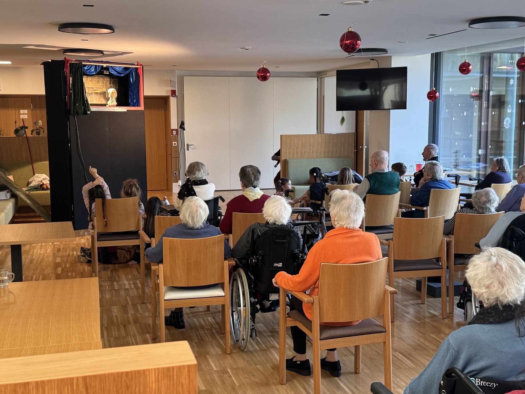 Sowohl die Jüngsten als auch die Ältesten folgten gespannt der Geschichte, die bei den Kindern immer wieder für begeisterte Zwischenrufe sorgte. Auch die Senior*innen und Mitarbeitenden des Hauses waren sichtlich angetan, und so manch eine*r fühlte sich in die eigene Kindheit zurückversetzt.