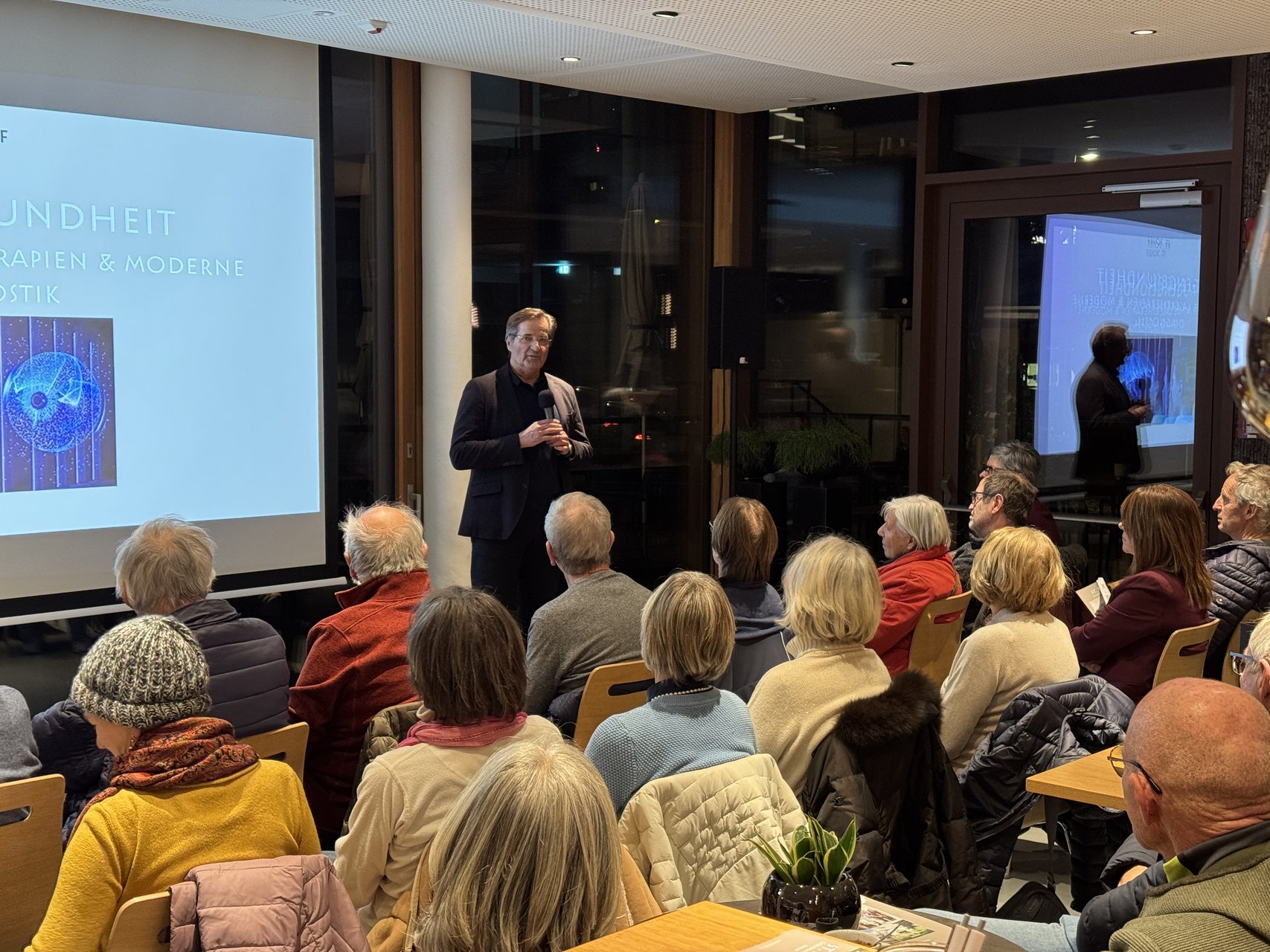Wie bei der Veranstaltungsreihe üblich, blieb im Anschluss ausreichend Zeit für individuelle Fragen aus dem Publikum. Auch der Moderator des Abends, Prof. Dr. Alfred Königsrainer, nutzte die Gelegenheit für einen fachlichen Austausch mit den Referentinnen. Der gelungene Auftakt der Veranstaltungsreihe endete mit der beruhigenden Gewissheit, dass die Gesundheit unserer Augen heute mehr denn je im Fokus von Wissenschaft, Forschung und medizinischem Fortschritt steht.