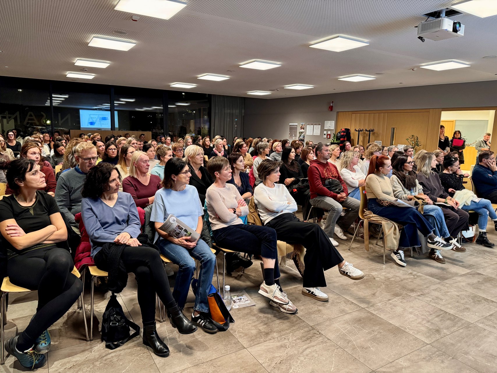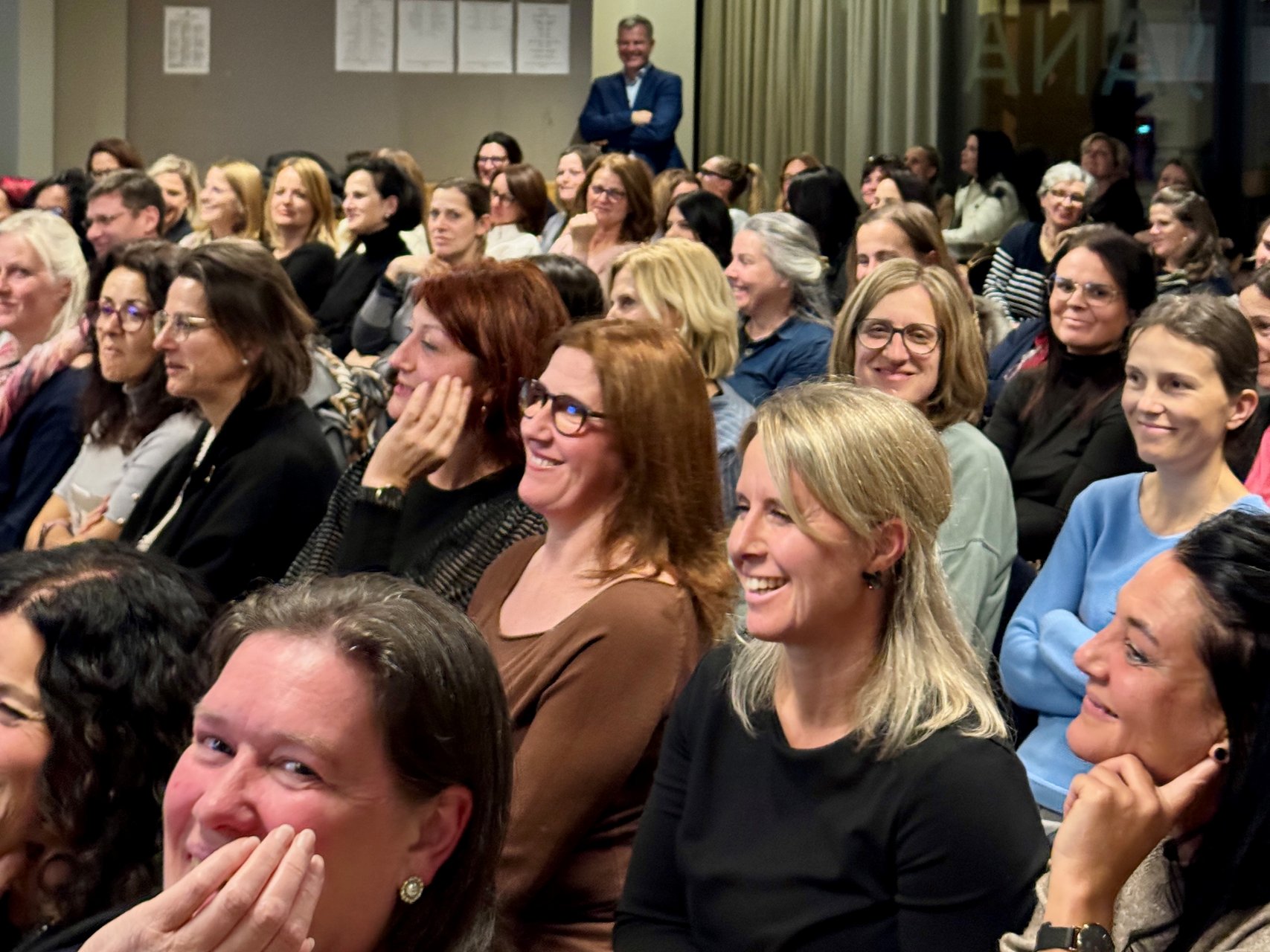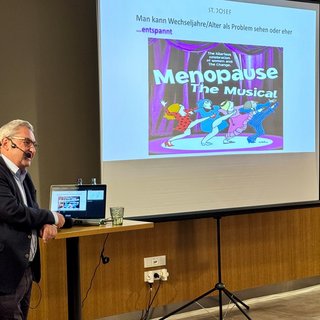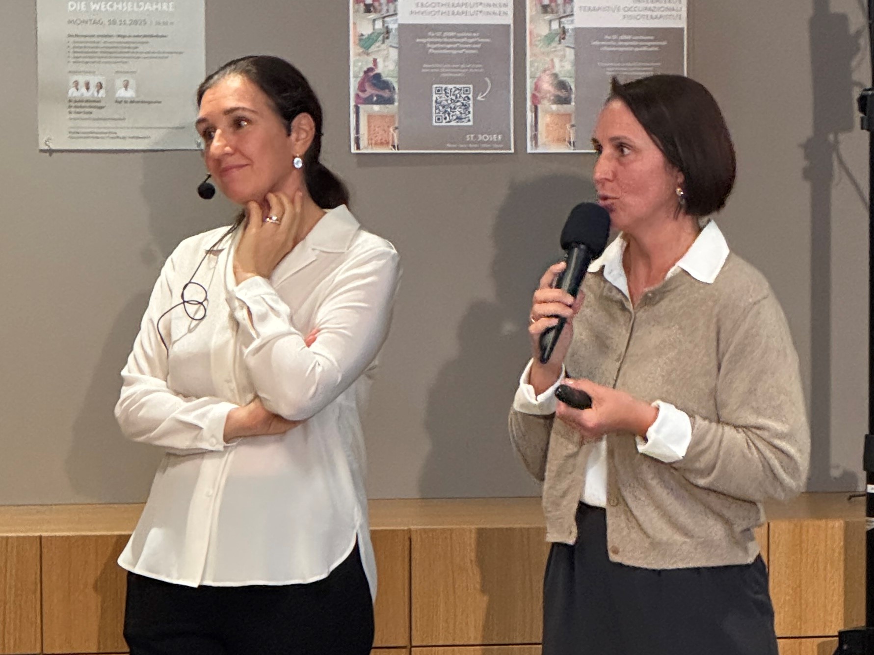Prof. Dr. Königsrainer eröffnete den Abend und begrüßte die Anwesenden, bevor er das Wort an die Fachärztinnen für Gynäkologie, Dr. Judith Wörnhart und Dr. Ester Scola, übergab. Diese führten das Publikum zunächst durch die verschiedenen Lebensphasen der Frau und erläuterten die körperlichen und psychischen Beschwerden, die häufig mit der Menopause einhergehen. Neben der Darstellung der Symptome lag der Fokus auch auf den vielfältigen Möglichkeiten, diese zu lindern. Besonders intensiv gingen sie auf die Hormonersatztherapie ein und räumten mit den Mythen und Ängsten auf, die in diesem Zusammenhang oft für Verunsicherung sorgen.