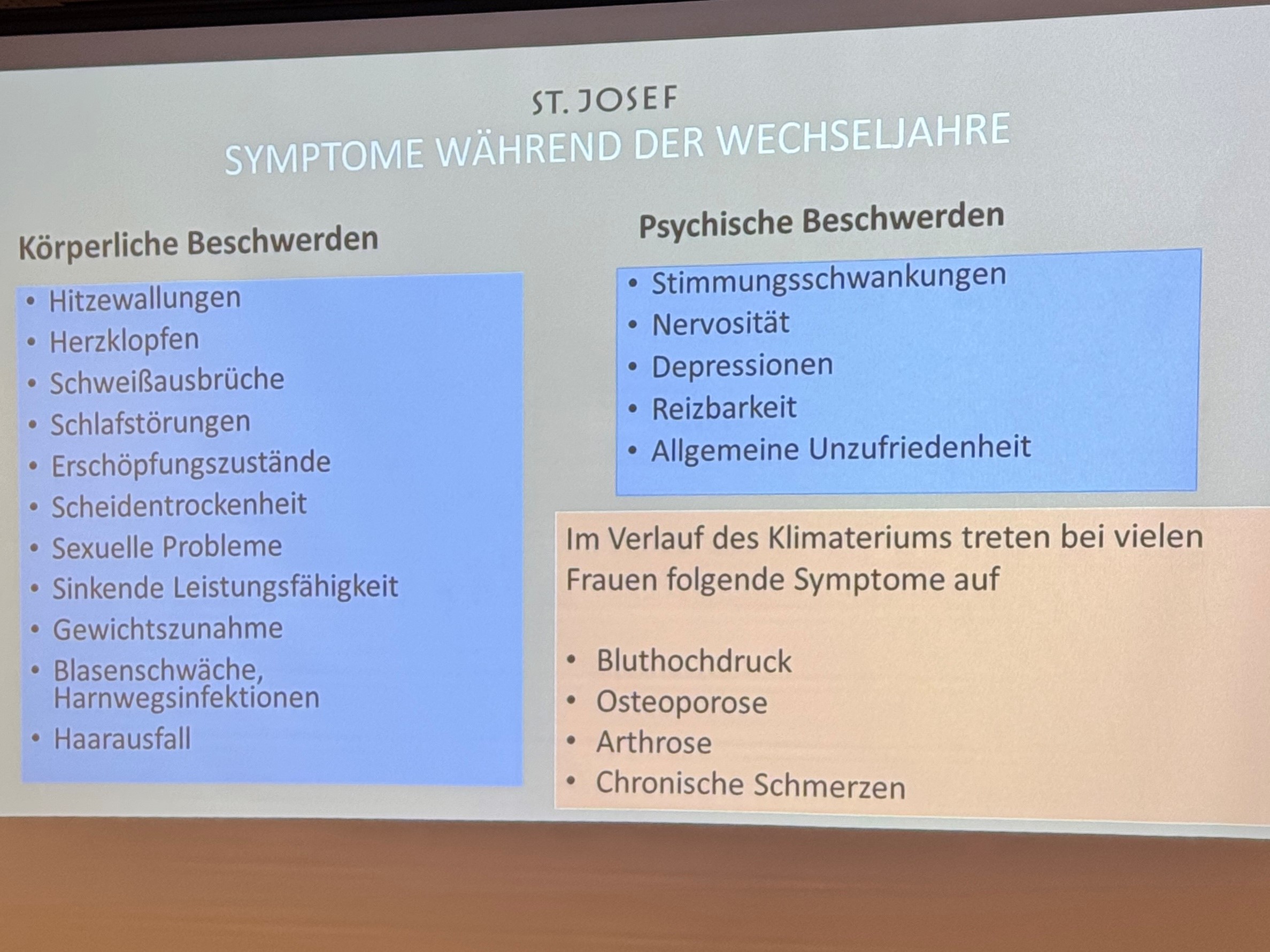 Zum Abschluss wurde noch einmal betont, welche Rolle die persönliche Haltung in dieser Lebensphase spielt. Man kann die Wechseljahre als Problem betrachten oder mit Gelassenheit und einer gesunden Portion Humor annehmen. Und wie ließe sich dieser positive Ansatz besser in die Tat umsetzen als bei einem entspannten Glas in der ST. JOSEF Bar, zu dem die Teilnehmer*innen im Anschluss herzlich eingeladen waren …