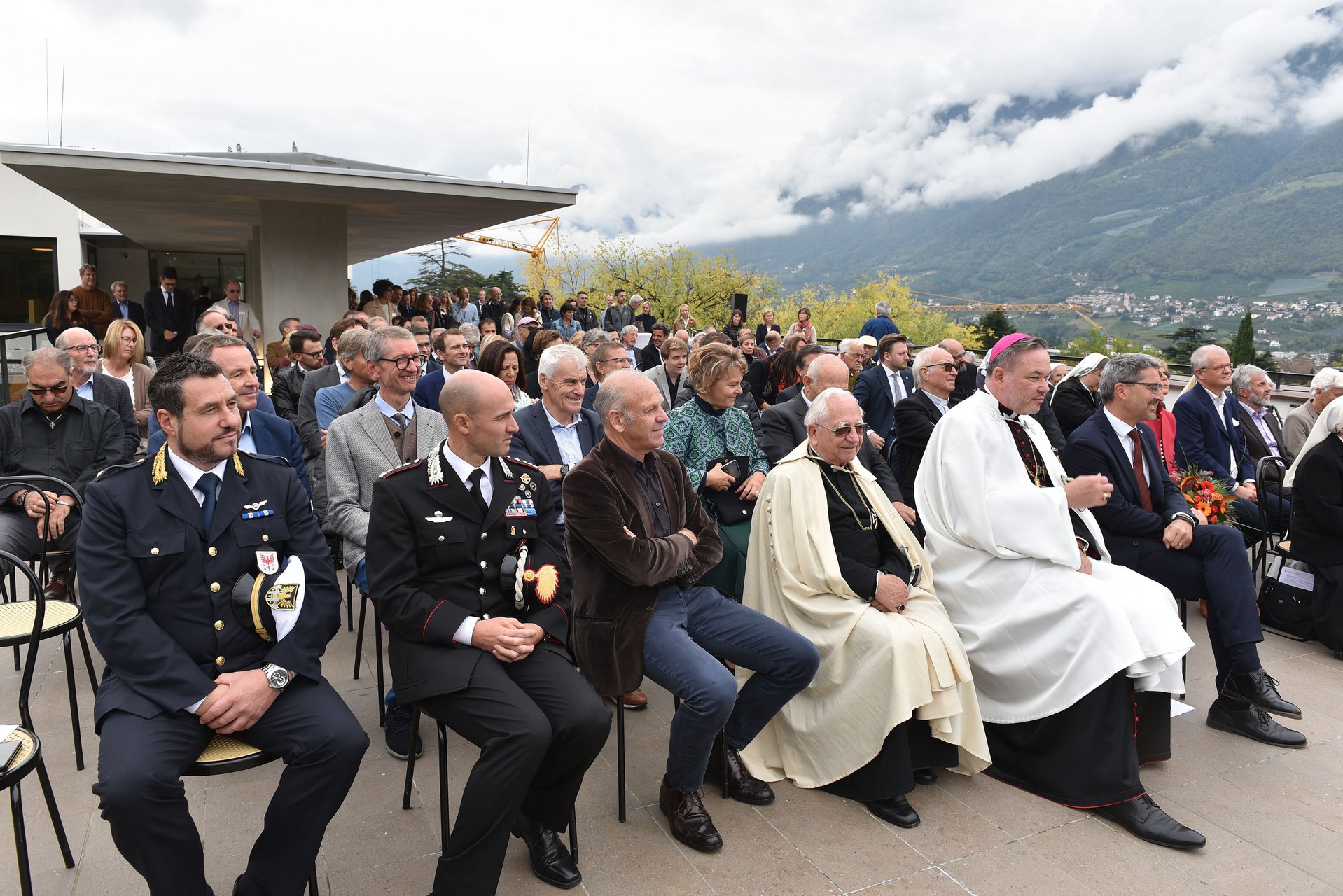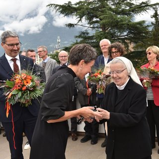 Provinzoberin Sr. Erentraud Gruber begrüßte mit bewegenden Worten der Dankbarkeit und Freude die große Gesellschaft, die sich auf der Sky-Lounge des ST. JOSEF Meran eingefunden hatte. Im Besonderen dankte sie den Behörden des Landes und der Stadt, die das Werk befürwortet, gefördert und mit Rat und Tat begleitet haben, den tüchtigen Mitarbeiterinnen und Mitarbeitern der Ordensverwaltung, allen voran Direktor Sepp Haller und Verwaltungsdirektor Richard Carotta mit ihrem Team, Pflegedienstleiterin Irene Platter mit ihrem Team und dem ärztlichen Leiter Primar Dr. Christian Wenter und dem Sanitätsdirektor des Gesundheitszentrums Prof. Dr. Alfred Königsrainer. Ein ganz herzlicher Dank ging auch an die Planer, Techniker und Firmen, die sich für das große Projekt begeistern ließen und es in pandemiebedingt schwierigsten Zeiten mit immensem Einsatz vorangetrieben und vollendet haben.