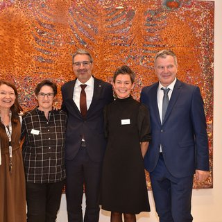 Kuratorin Sabine Gamper berichtete über den spannenden Parcours der Kunst durch das Gebäude im ST. JOSEF Meran, welcher in Zusammenarbeit mit den Künstler*innen Julia Bornefeld, Manfred A.Mayr, Josef Rainer, Martina Steckholzer und Robert Pan entstanden ist. Ein bereits vorhandenes Kunstwerk des verstorbenen Künstlers Friedrich Gurschler wurde ebenfalls dazu geholt. Die Deutschordensschwestern Lana hatten bereits zu einem sehr frühen Zeitpunkt der Entstehung des neuen ST. JOSEF Meran eine Beteiligung von Künstler*innen zur Gestaltung des neuen Hauses vorgesehen, und sich dafür entschieden, diese in Form eines kuratorisch betreuten Konzeptes zu involvieren.