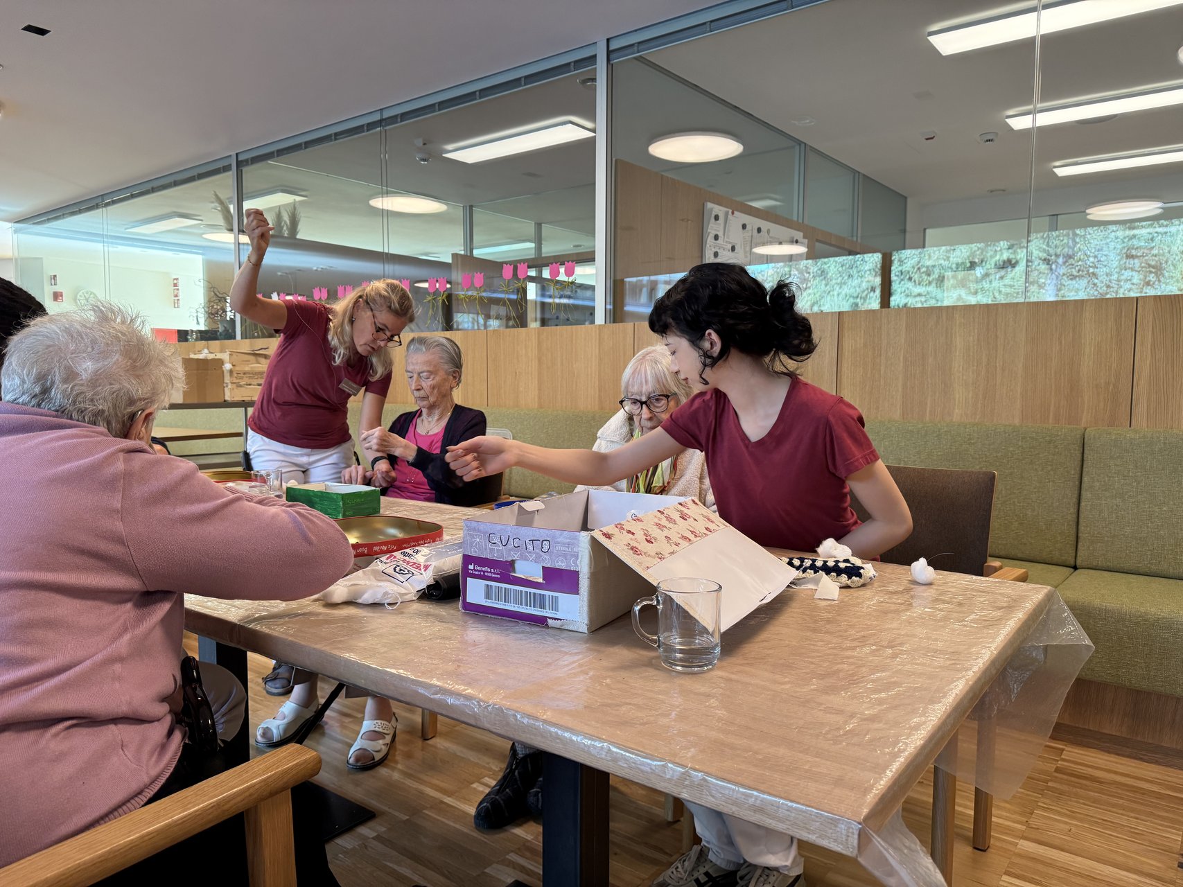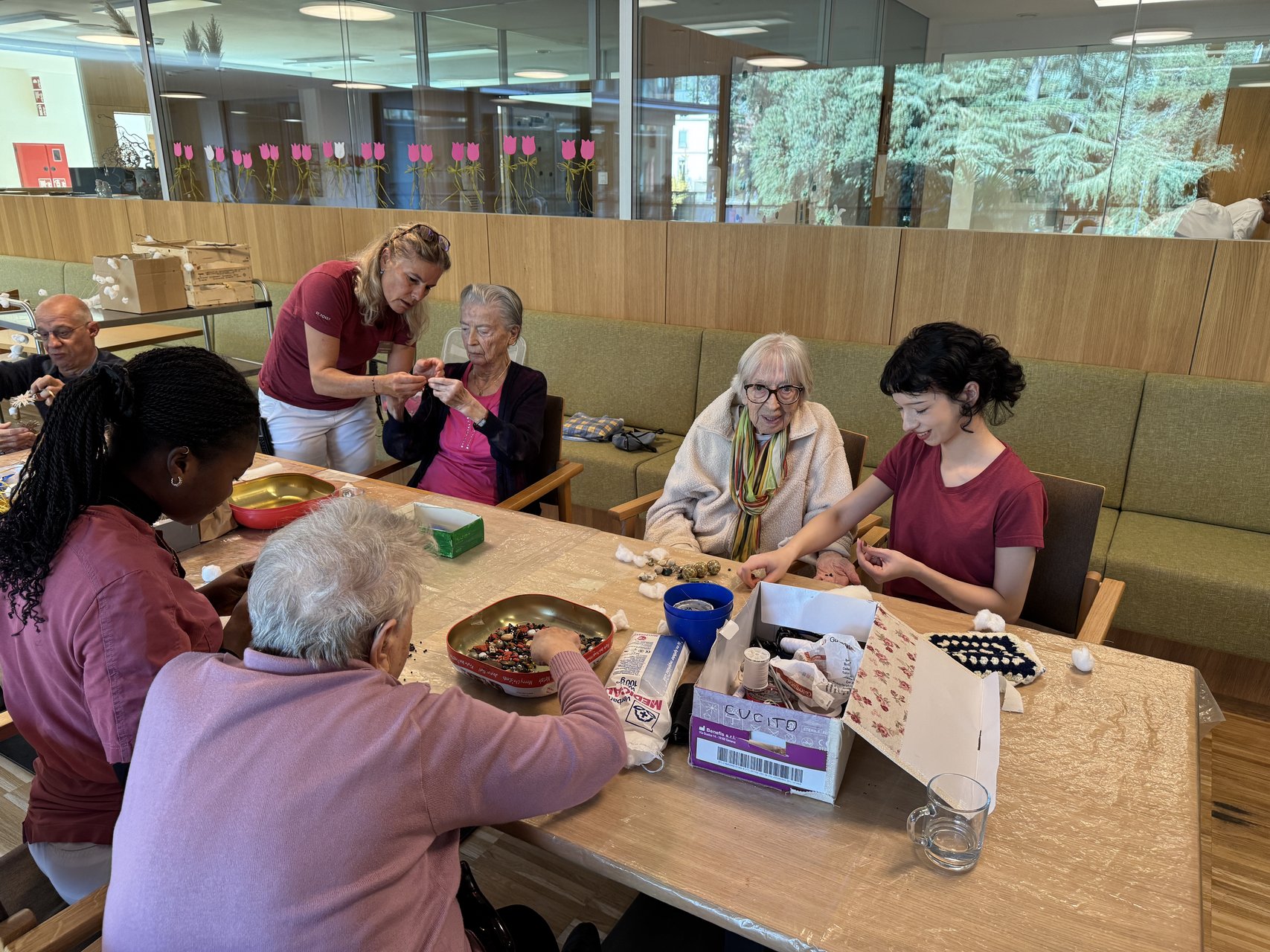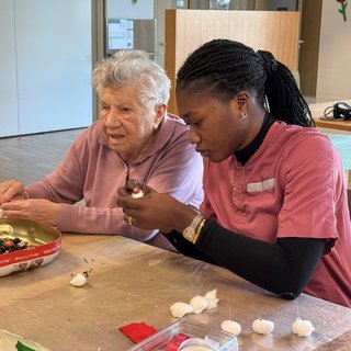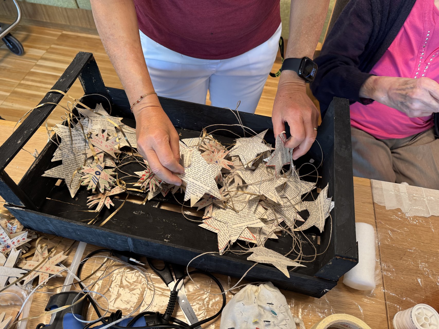 Während fleißig geschnitten, geklebt und arrangiert wurde, blieb natürlich auch Zeit für heitere Gespräche und das ein oder andere Späßchen. Und so wurde aus der Runde schnell eine heitere Bastelgemeinschaft, die nicht nur für willkommene Abwechslung sorgte, sondern auch die Feinmotorik und das Miteinander stärkte. Am Ende war im gemütlichen Wohnbereich ein Hauch von Adventszauber spürbar … und die Vorfreude aufs nächste Mal.