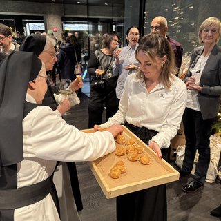 Neben den höchsten Vertreter*innen des Deutschen Ordens und der Deutschordensschwestern, waren mehr als 300 Mitarbeitende aus den 22 Betrieben des Ordens der Einladung gefolgt: die Schülerheime ST. GEORG, PETER RIGLER und DEUTSCHHAUS MARIANUM in Bozen, die Internatsschule MARIENGARTEN in St. Pauls, die landwirtschaftlichen Betriebe in Siebeneich, Gargazon, Meran, Lana und der Flatschbergalm, das Kloster LANEGG und der KONVENT Lana, die Gästehäuser SIRMIAN, BAUMANNHOF und SALVATORIANERINNEN, das Gästehaus PROCURA in Rom, die Pachtbetriebe und Immobilien, die Pflege- und Altersheime ST. JOSEF Völlan, SONNENBERG Eppan, ST. ANNA Lana und das Kur- und Pflegeheim ST. JOSEF Meran mit dem Gesundheitszentrum Meran – Bozen. Hinzu kamen Partner aus Recht und Wirtschaft, Berater und Ehrengäste.