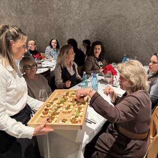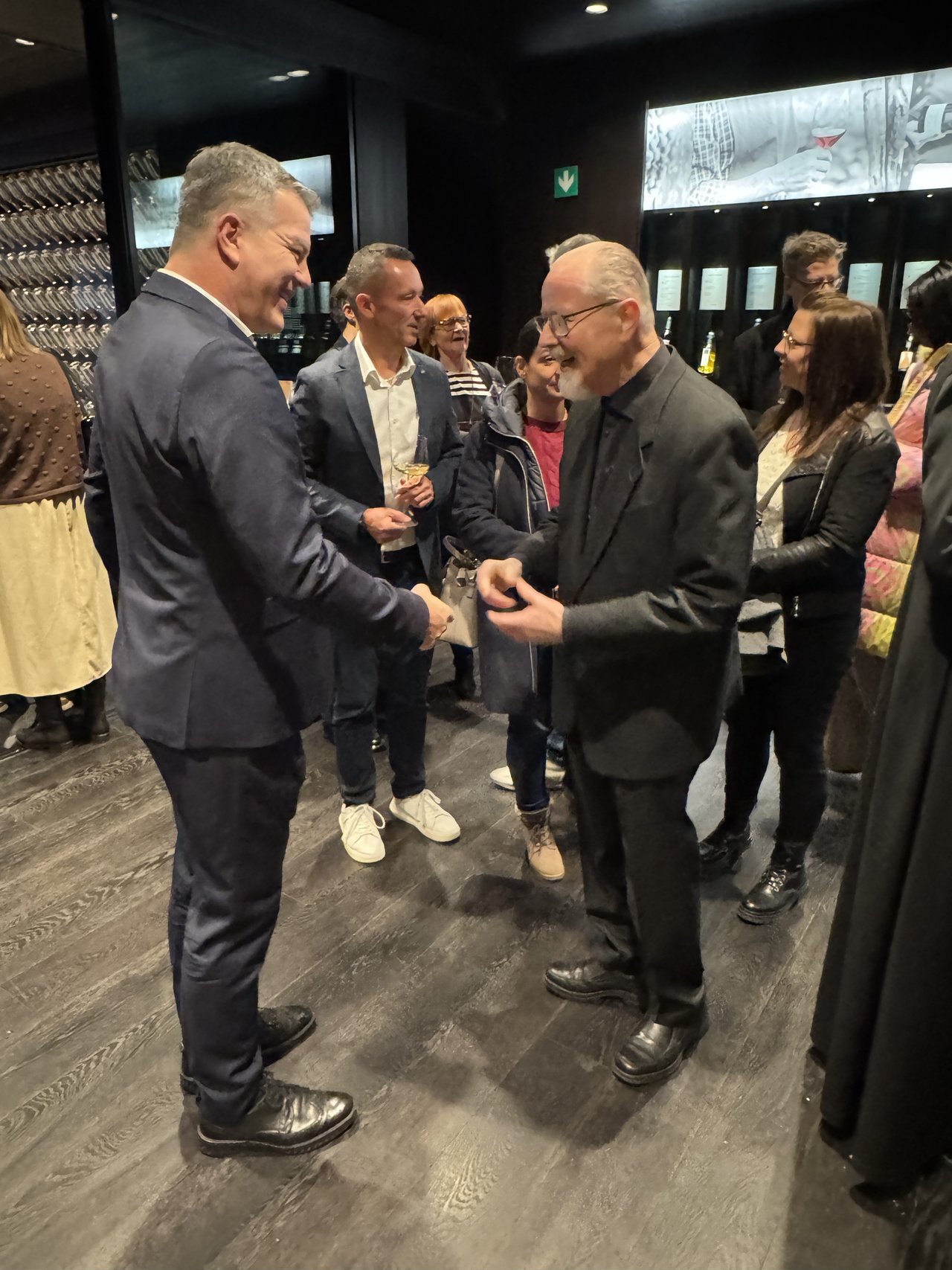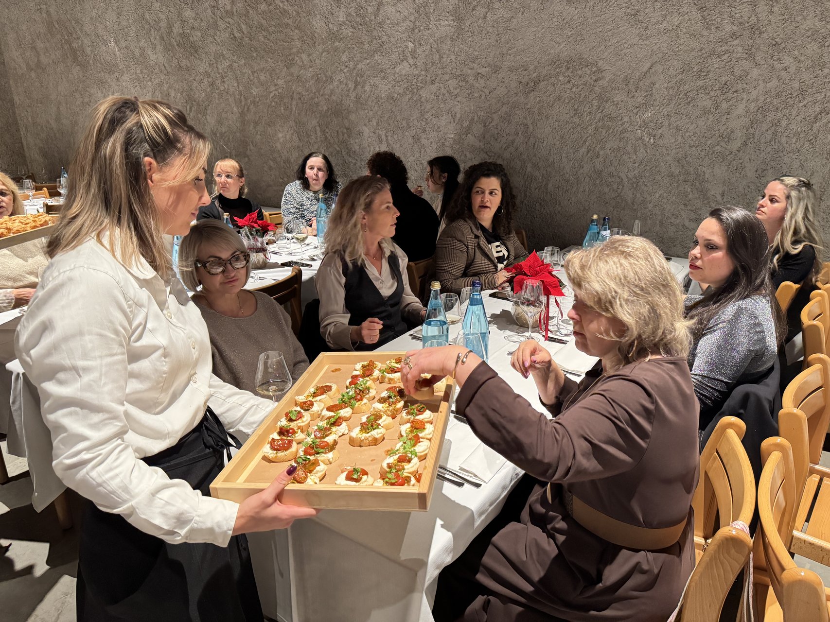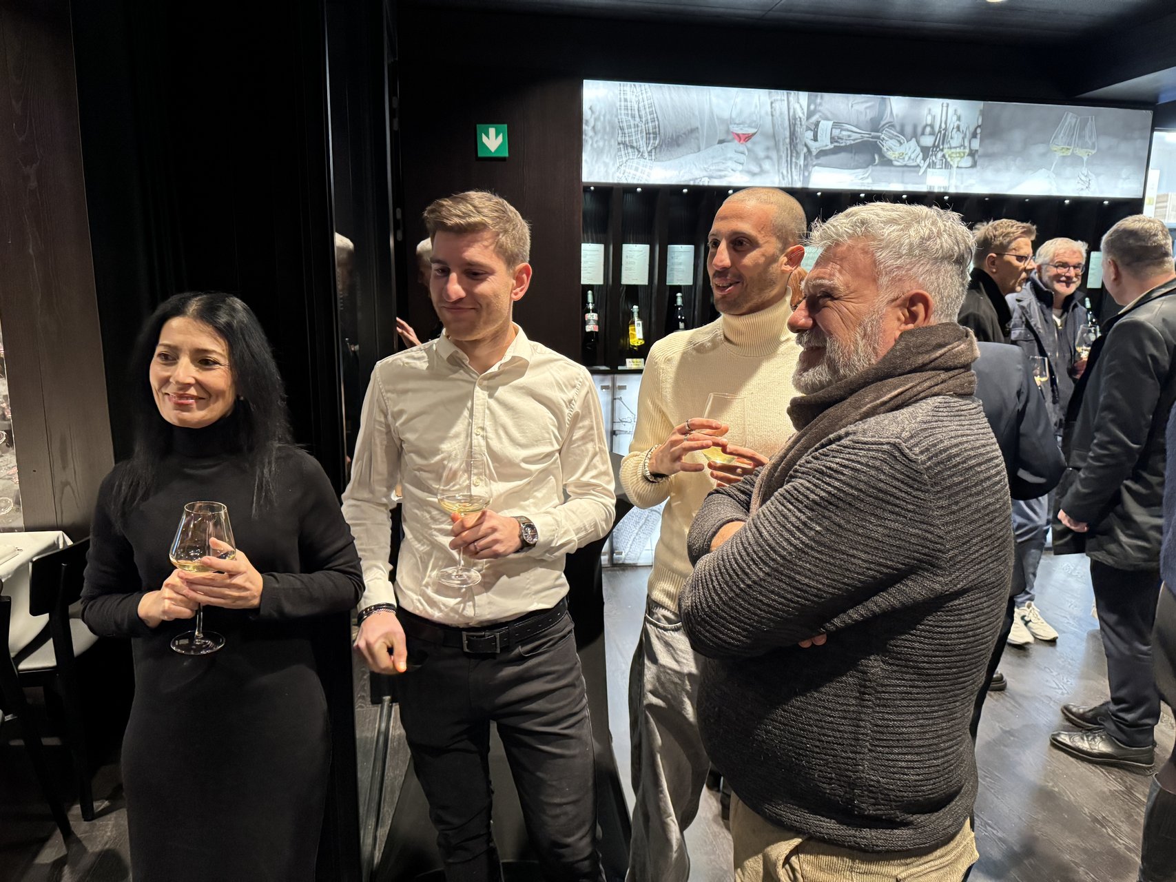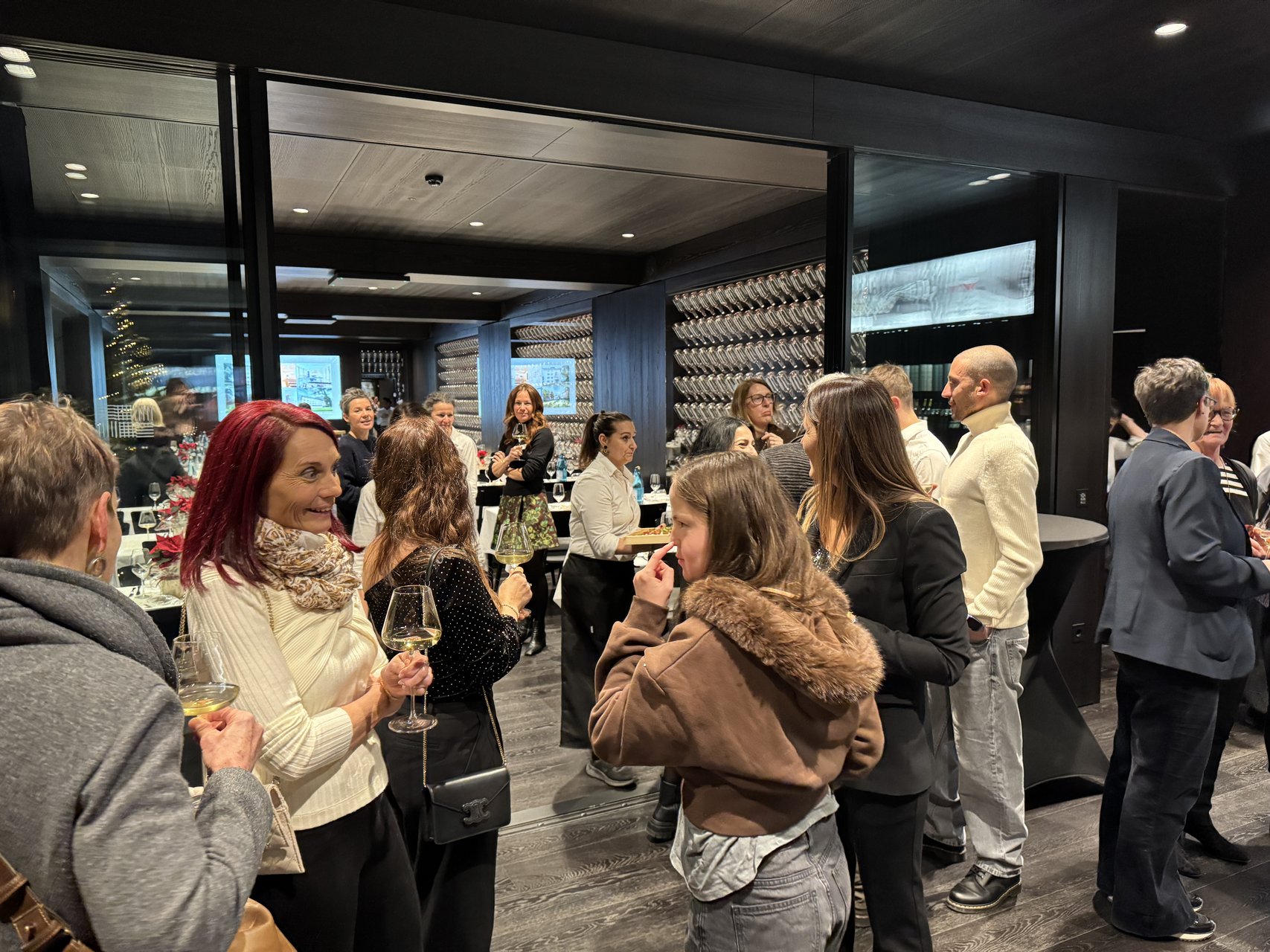 Mit einem Aperitif und feinem Fingerfood wurden die Gäste gegen 18 Uhr in Empfang genommen und in die festlich geschmückten Räume der City Vinothek geführt. Der Abend begann in entspannter Atmosphäre und bot eine willkommene Gelegenheit, um sich für einen Moment vom hektischen Alltag zu lösen und in die besinnliche Stimmung der Adventszeit einzutauchen. Musikalisch umrahmt wurde die Feier von den weihnachtlichen Jazz-Klängen der Band rund um Judit Pixner.