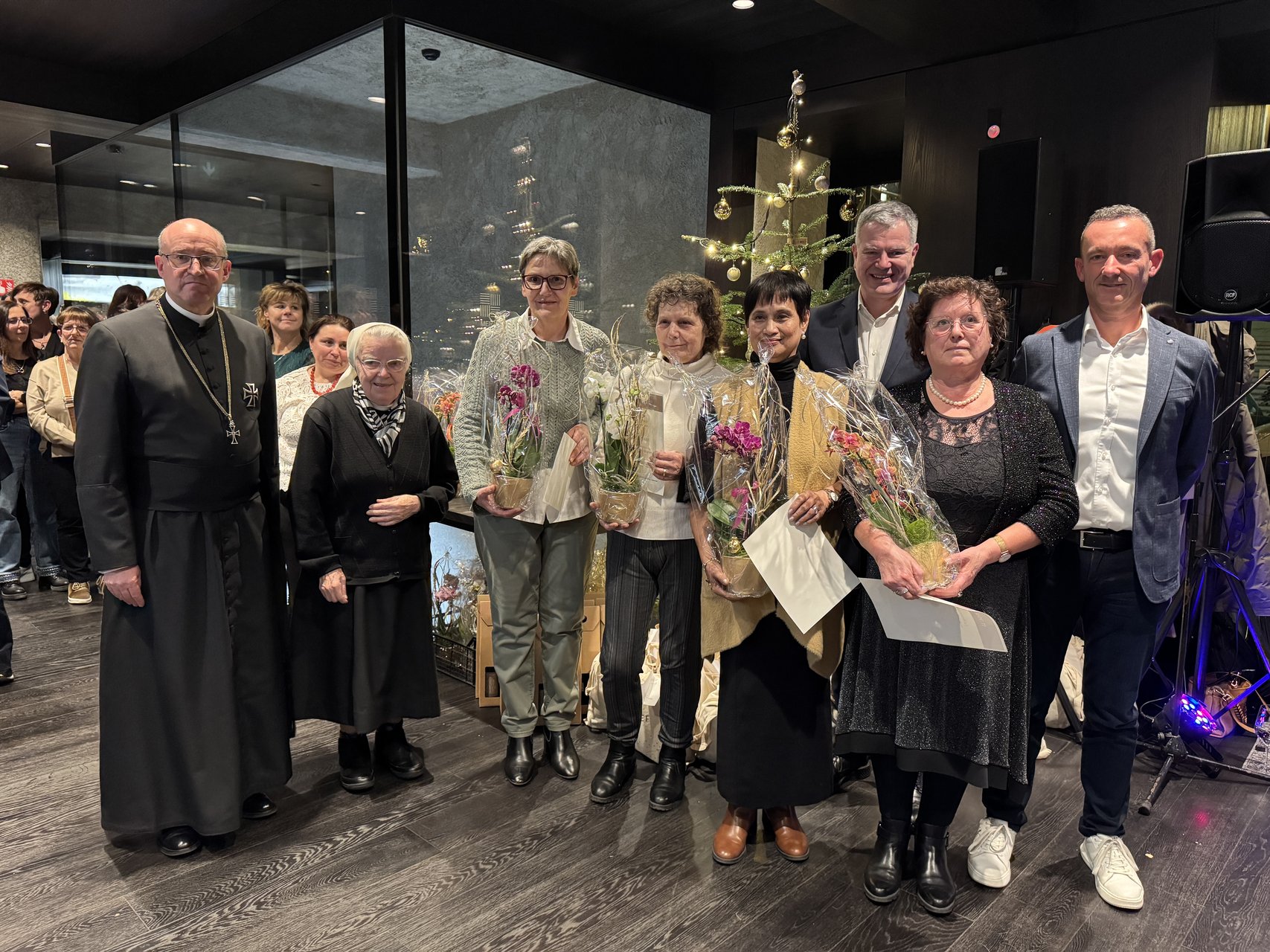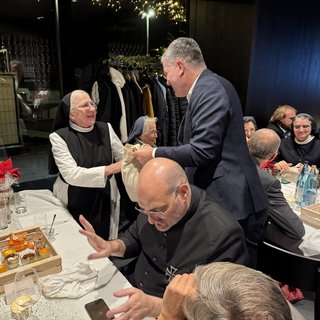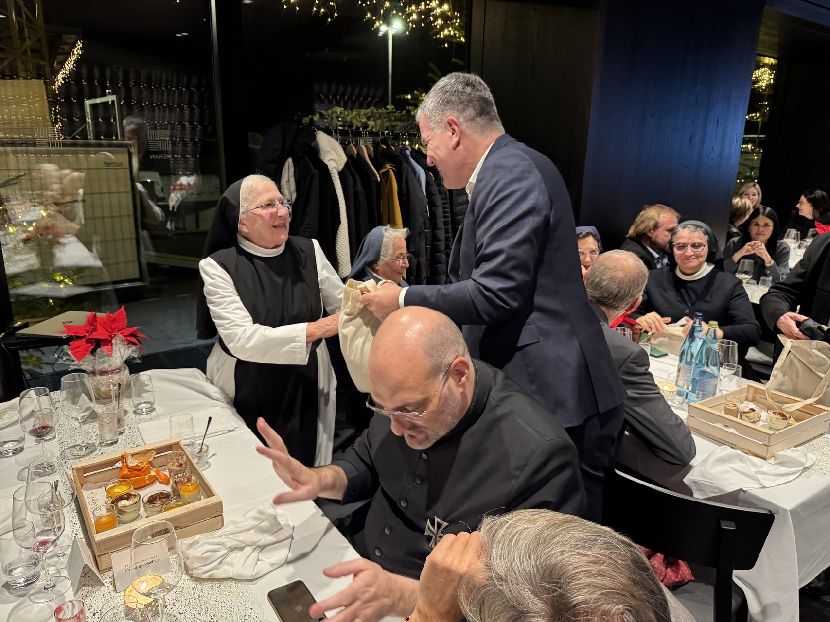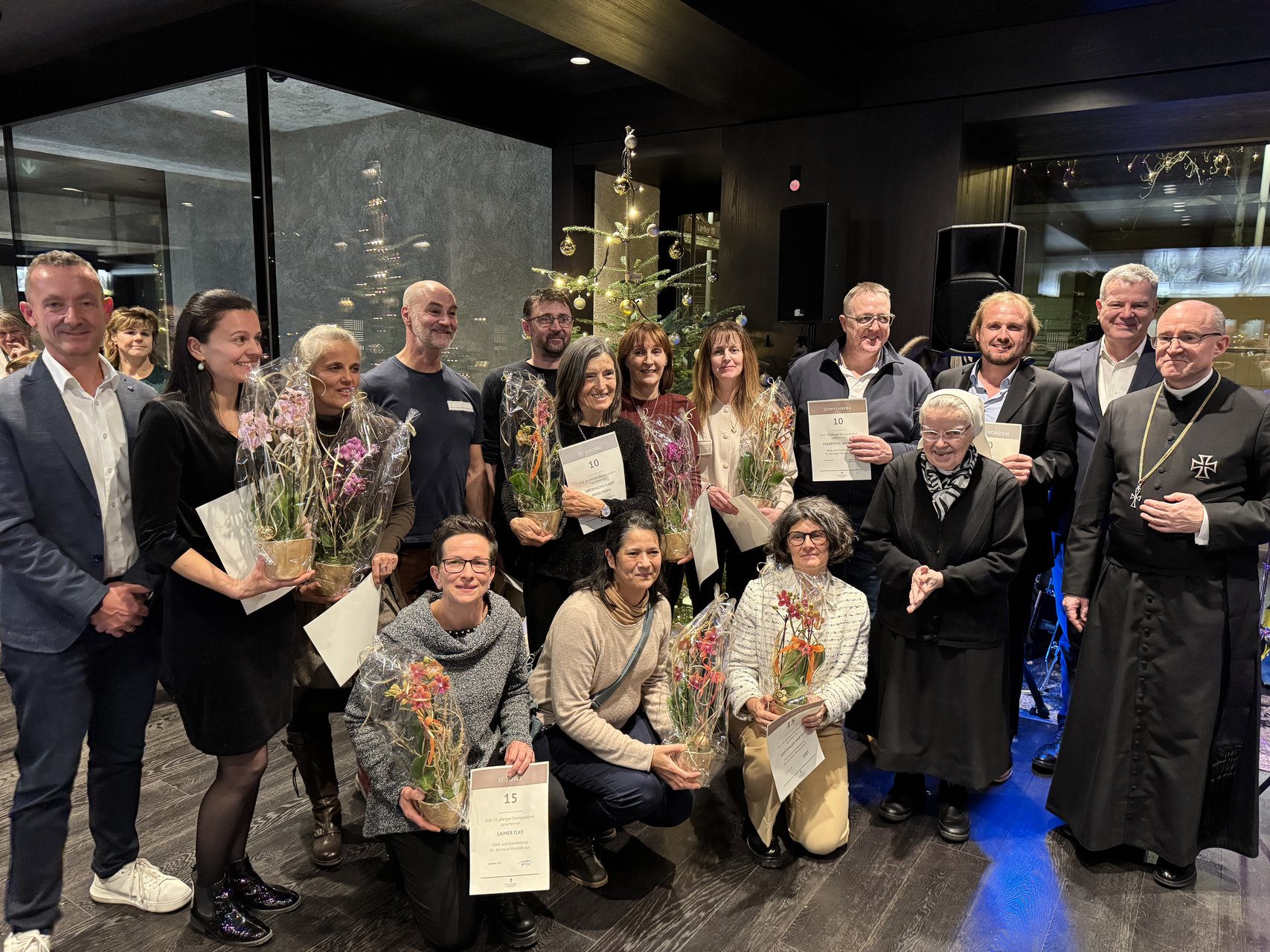 Nach dem genussvollen 3-Gänge-Menü von Oskars Catering ergriff Direktor Sepp Haller das Wort und brachte seinen aufrichtigen Dank für die Arbeit und Hingabe des Teams aus. Es folgten die Worte von Prior Christian Stuefer, der die Versammelten mit einem kurzen Gebet und nachdenklichen Worten auf das vergangene Jahr zurückblicken ließ. Gemeinsam mit der Provinzoberin Sr. Erentraud Gruber nahm er anschließend die Ehrung langjähriger Mitarbeiter*innen und die Verabschiedung derer vor, die in den wohlverdienten Ruhestand treten.
