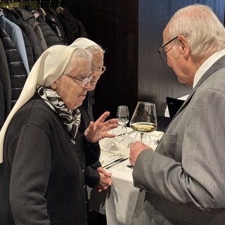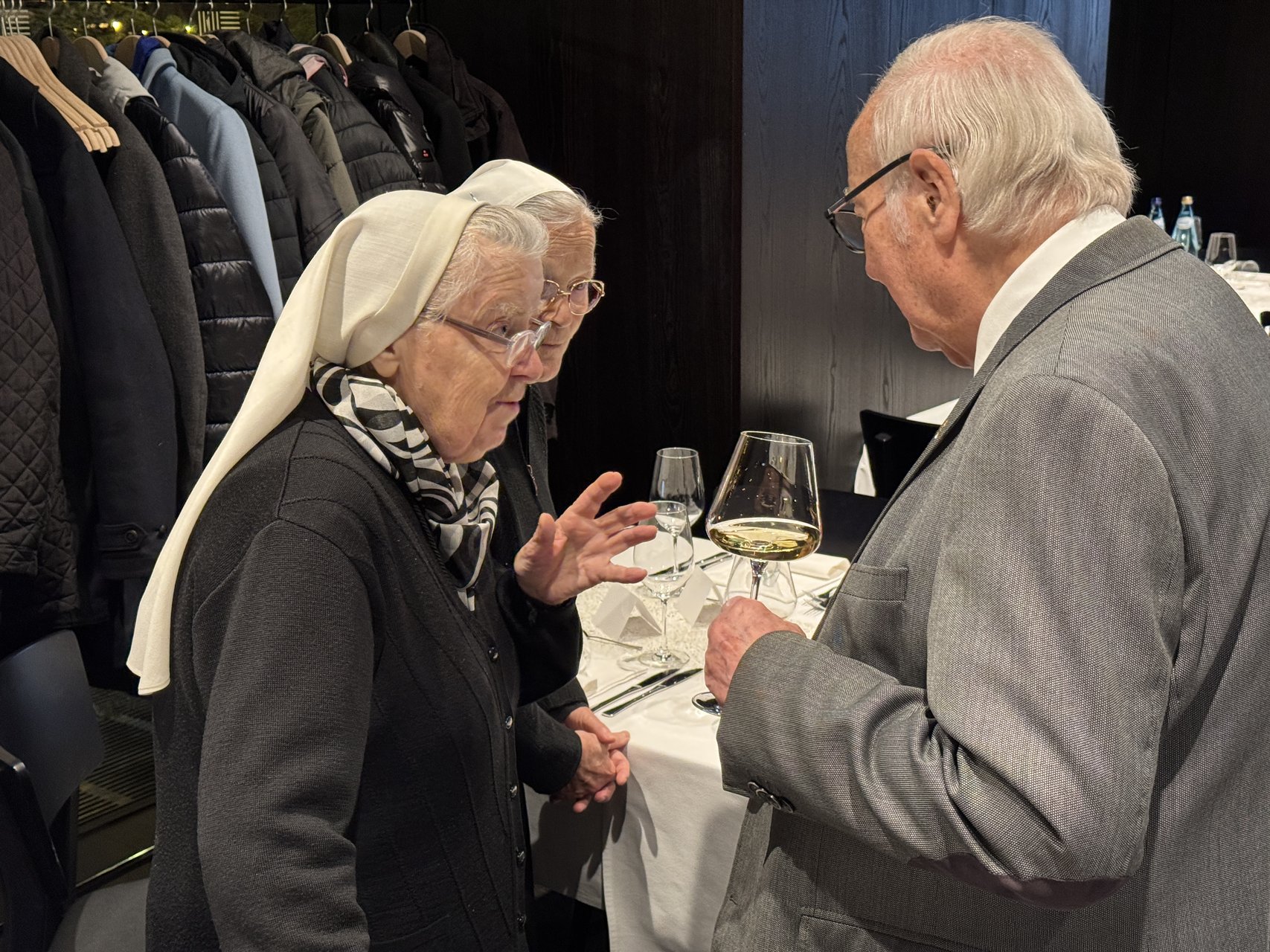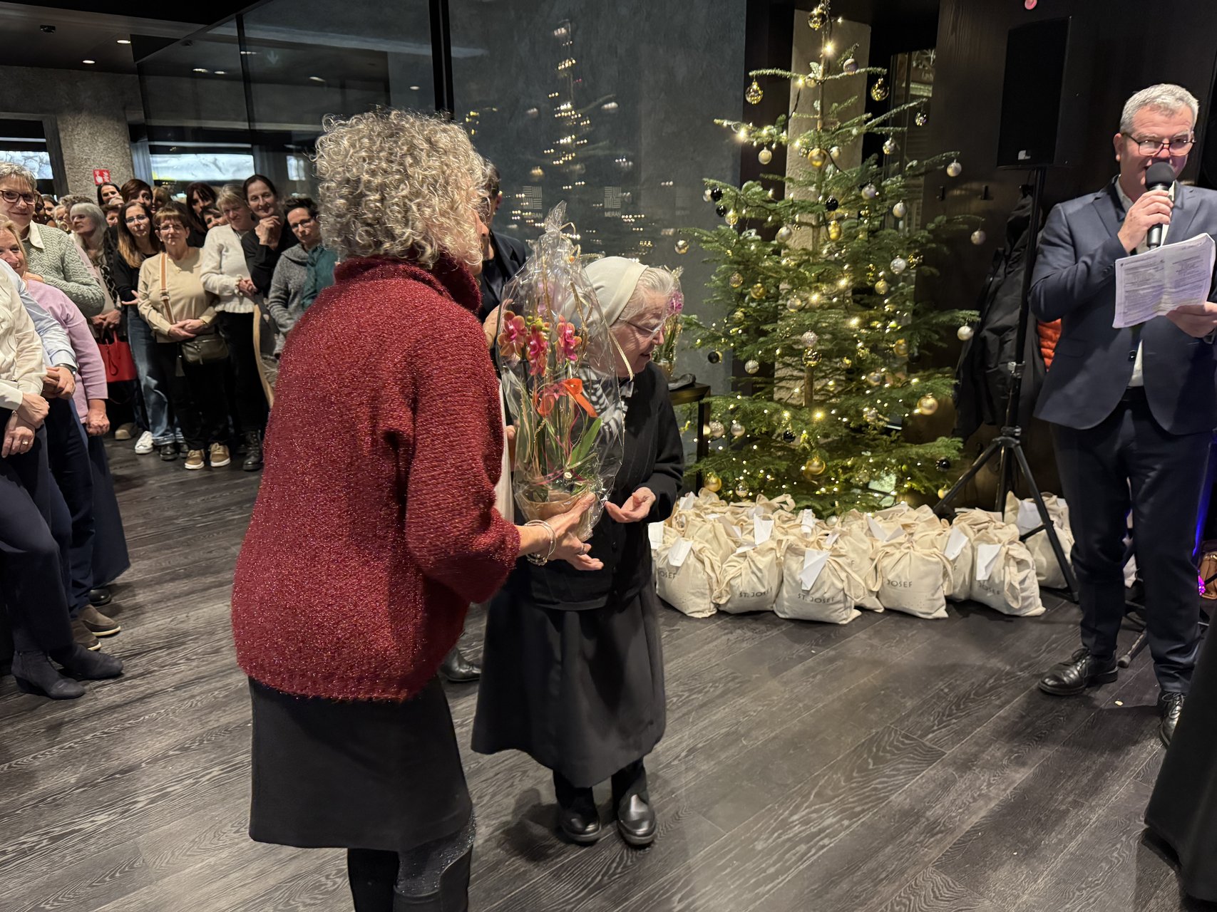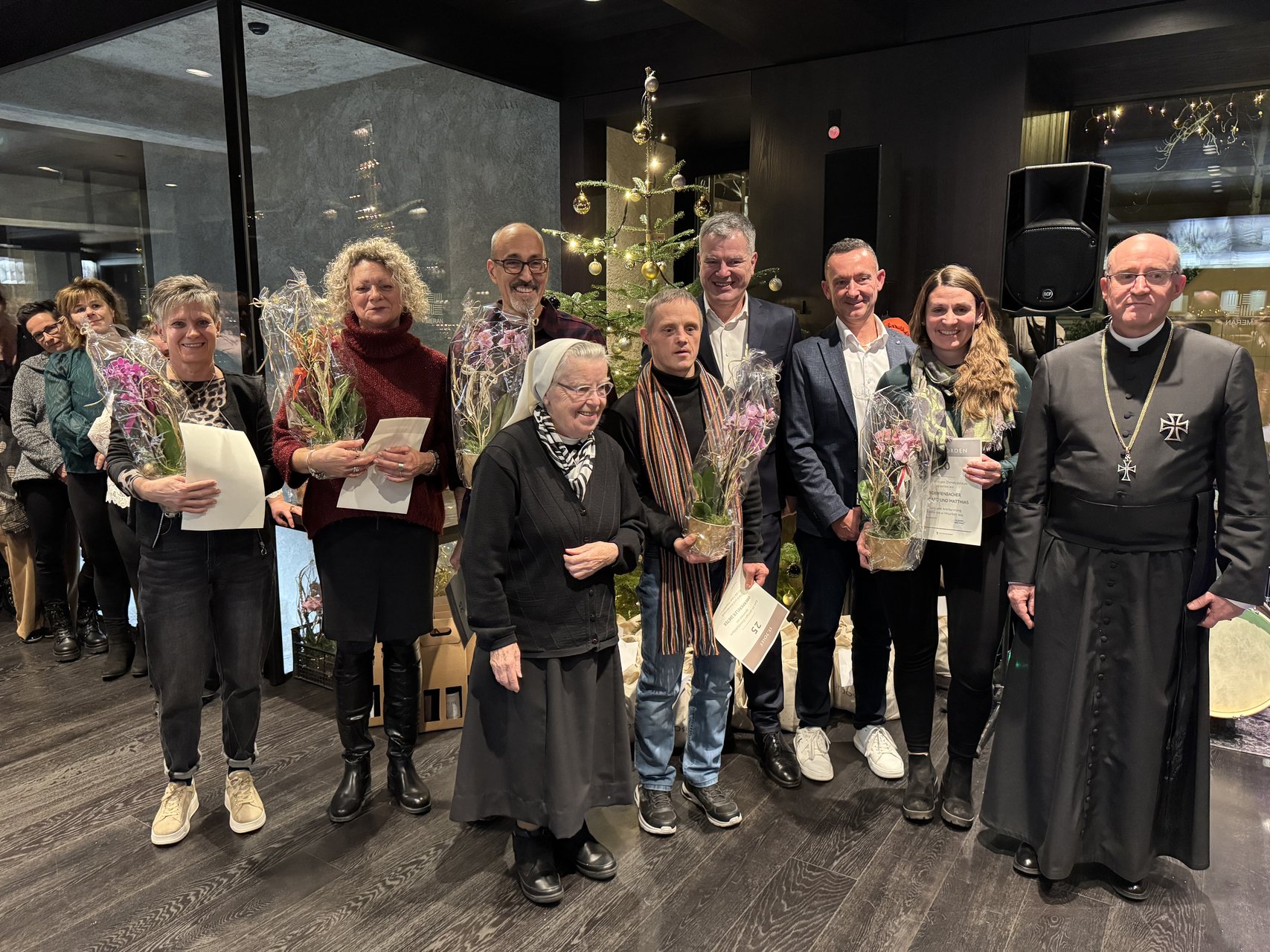 Nach dem genussvollen 3-Gänge-Menü von Oskars Catering ergriff Direktor Sepp Haller das Wort und brachte seinen aufrichtigen Dank für die Arbeit und Hingabe des Teams aus. Es folgten die Worte von Prior Christian Stuefer, der die Versammelten mit einem kurzen Gebet und nachdenklichen Worten auf das vergangene Jahr zurückblicken ließ. Gemeinsam mit der Provinzoberin Sr. Erentraud Gruber nahm er anschließend die Ehrung langjähriger Mitarbeiter*innen und die Verabschiedung derer vor, die in den wohlverdienten Ruhestand treten.