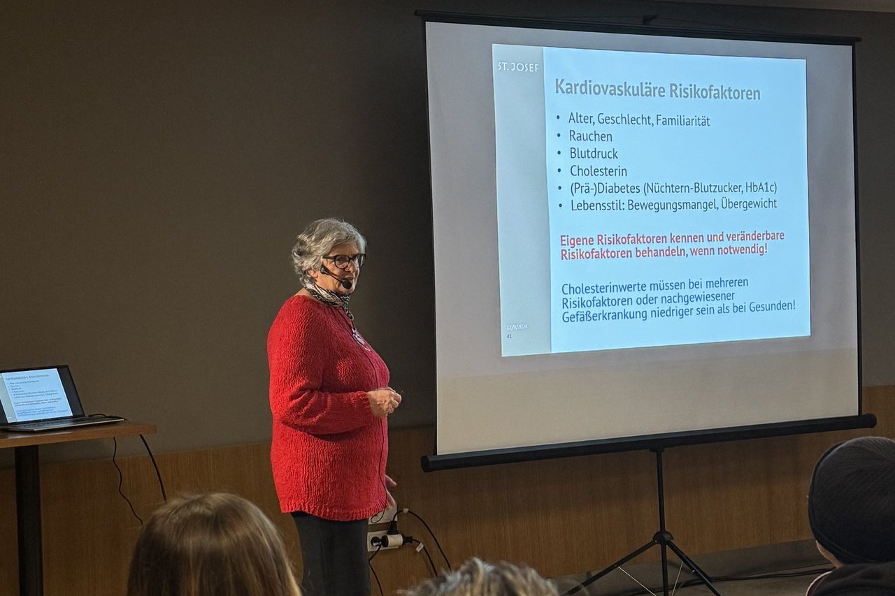 Am 9. Dezember fanden sich Interessierte im ST. JOSEF Meran ein, um im Rahmen der Inforeihe "Gsund bleiben" mehr über das Thema Herzgesundheit zu erfahren. Unter dem Titel „Herz in Gefahr“ bot Dr. Ulrike Neumayer, Fachärztin für Innere Medizin und Kardiologie, einen umfassenden und aufschlussreichen Vortrag über Herzinfarkte, deren Ursachen, Symptome, Behandlungsmöglichkeiten und langfristige Folgen.